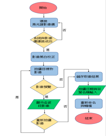 在這個高壓環境下的社會,許多人會去路邊的手搖店買杯手搖杯來小憩一下,但人們往往都不會注意到,買的手搖是否為真材實料。高光譜成像分析為應用在茶葉上的數據分析系統,本專題在硬體方面使用了 imec Snapscan VNIR 高光譜影像儀,取得樣品的影像資料後使用 Matlab 的演算法對其去做分類及分群,也再更進一步的藉由獲得的影像資料分析出其特徵光譜,這有助於分辨樣品的不同。通過這項技術去研究茶葉的特徵光譜,我們能夠幫助消費者去分辨樣品是否混茶或是分辨其為何種茶葉,幫助消費者免於被不肖業者詐欺。目前除了直接人工從外型或是味道進行篩檢外,無其他方法能夠檢測混茶,更何況人工的方式容易有疏失,此專題就是為了解決這個難題而進行的研究。由於每個物品都有它自己的特徵光譜,我們可以透過研究茶葉的影像資料來標記每個茶葉有哪個波段的特徵光譜,之後測試其他樣品時,可以透過其特徵波段來得知其茶葉品種,以達到更準確、更有效率的篩選。